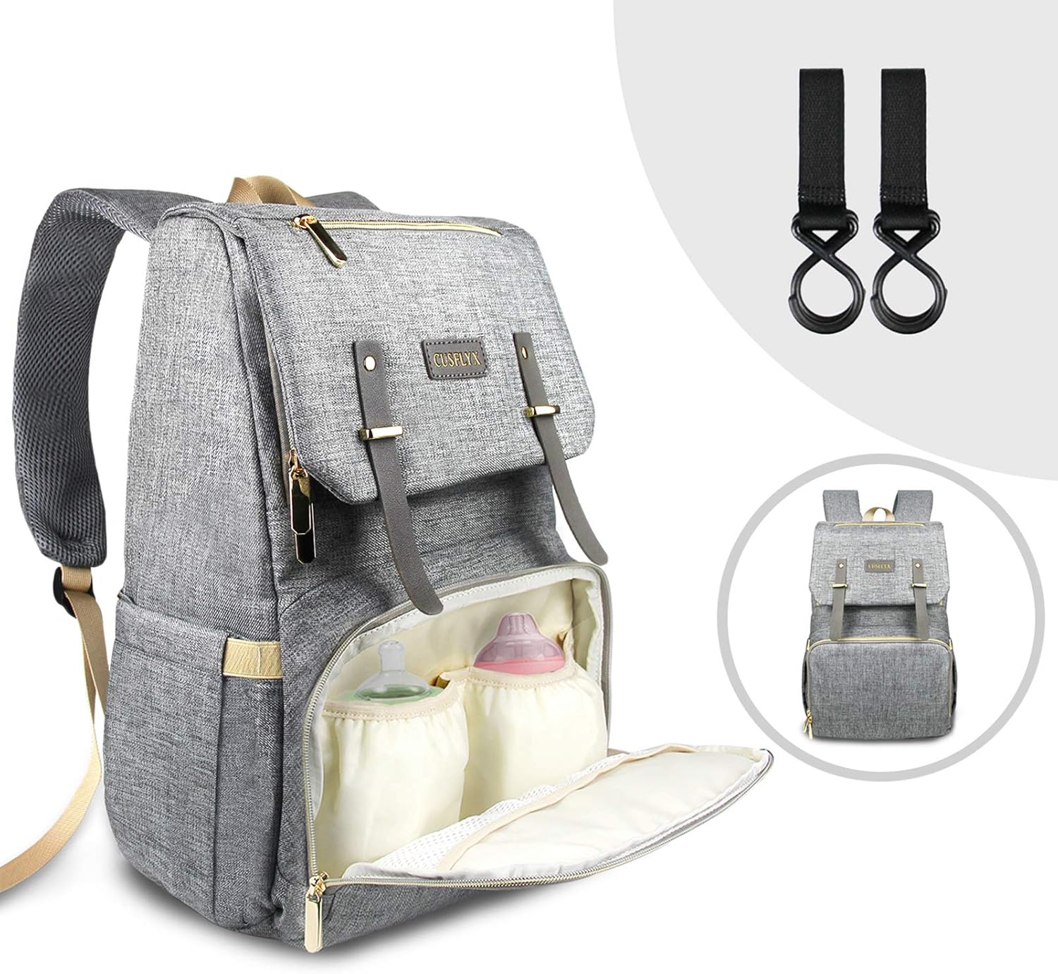 Sacs A Dos A Langer Cusflyx Bebe Impermeable Sac A Langer Sac A Dos Voyage Decontracte Grand Capacite Avec 2 Sacs Isolants Et 2 Crochets Pour Poussette Gris Amazon Fr Bebes Puericulture