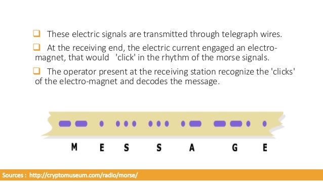 Morse code is a type of code that is used to send telegraphic information using rhythm Morse code uses dots and dashes to show the alphabet letters, numbers, punctuation and special characters of a given message When messages are sent by Morse code, dots are short beeps or clicks or flashes, and dashes are longer ones. Signal en morse Morse intime Ecrit en morse Phoque et morse Cest du morse Ercit en morse C est du morse Duo de morse Mammifere marin pres du morse;. The message was taken from the Bible Numbers 2323, and it wasrecorded on a paper tape It had been suggested to Morse by Annie Ellworth, the young daughter of a friend.