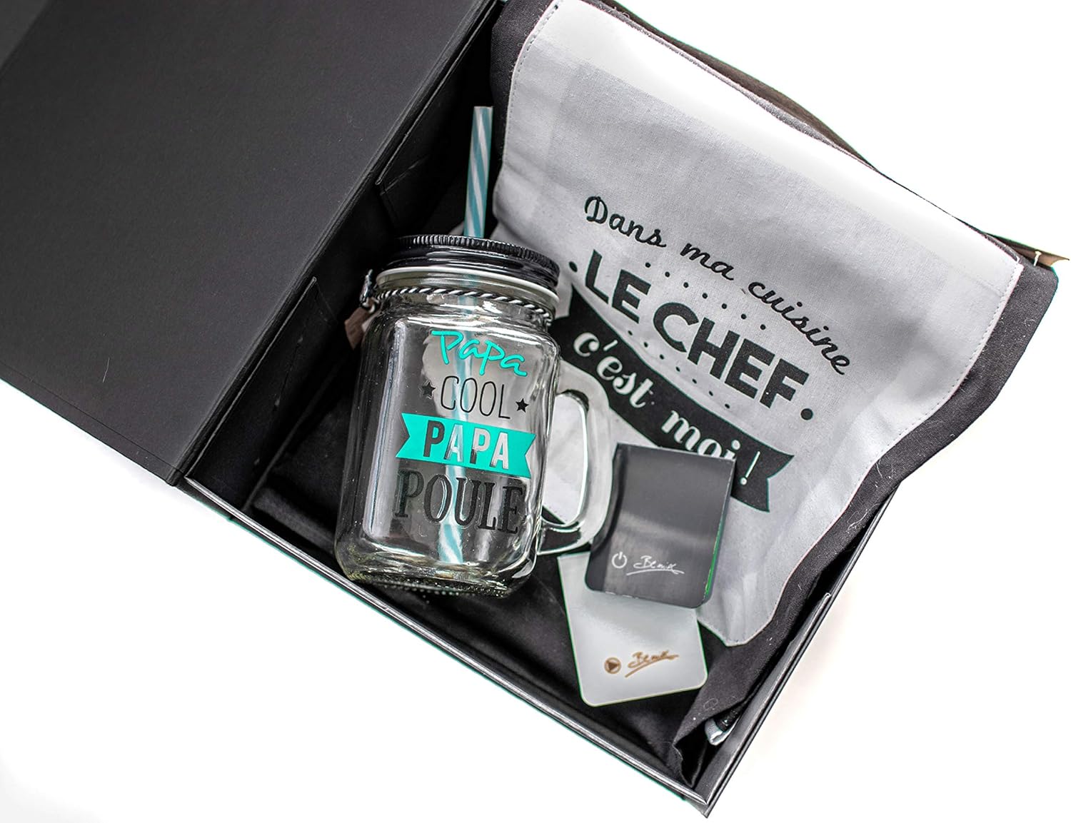 Inclus Un Tablier Papa Poule Un Bocal En Verre Detox Et Un Porte Smartphone Noel Idee Cadeau Pret A Offrir Fetes Des Peres Cs Comptoir Sens Coffret Cadeau Papa Poule Ideal Anniversaire