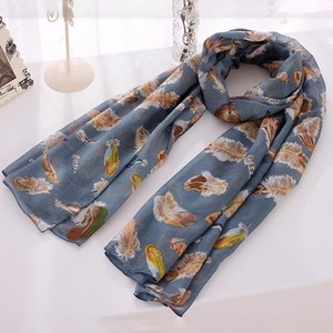 Foulard Echarpe Cheche Etole Scarf Femme Gris Bleu Imprime De Plumes Mbbf223 Ebay