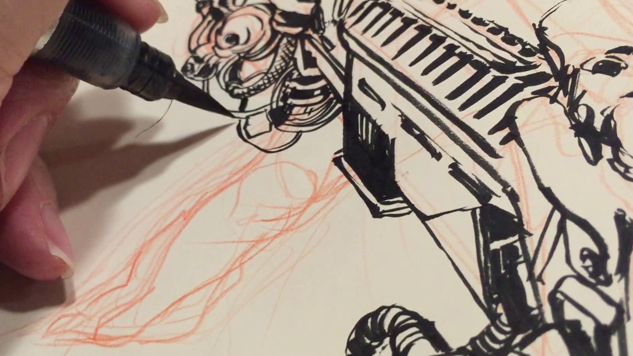 Drawing With A Pentel Ink Brush Pen Kick Ass Sci Fi Girl Youtube
