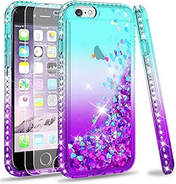 Leyi Coque Pour Iphone 6 Iphone 6s Verre Trempe Lot De 2 Fille Personnalise Liquide Paillette