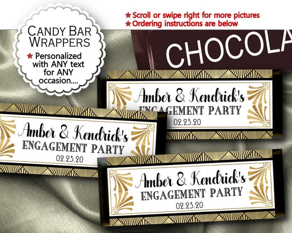 Candy Bar Wrappers Party Favor Gatsby Art Nouveau Art Deco Black Gold Wedding Anniversary Bridal Birthday Anniversary Retire By Necessitees Catch My Party