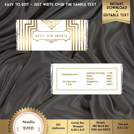 Great Gatsby Candy Bar Wrapper Art Deco Candy Bar Wrapper Etsy