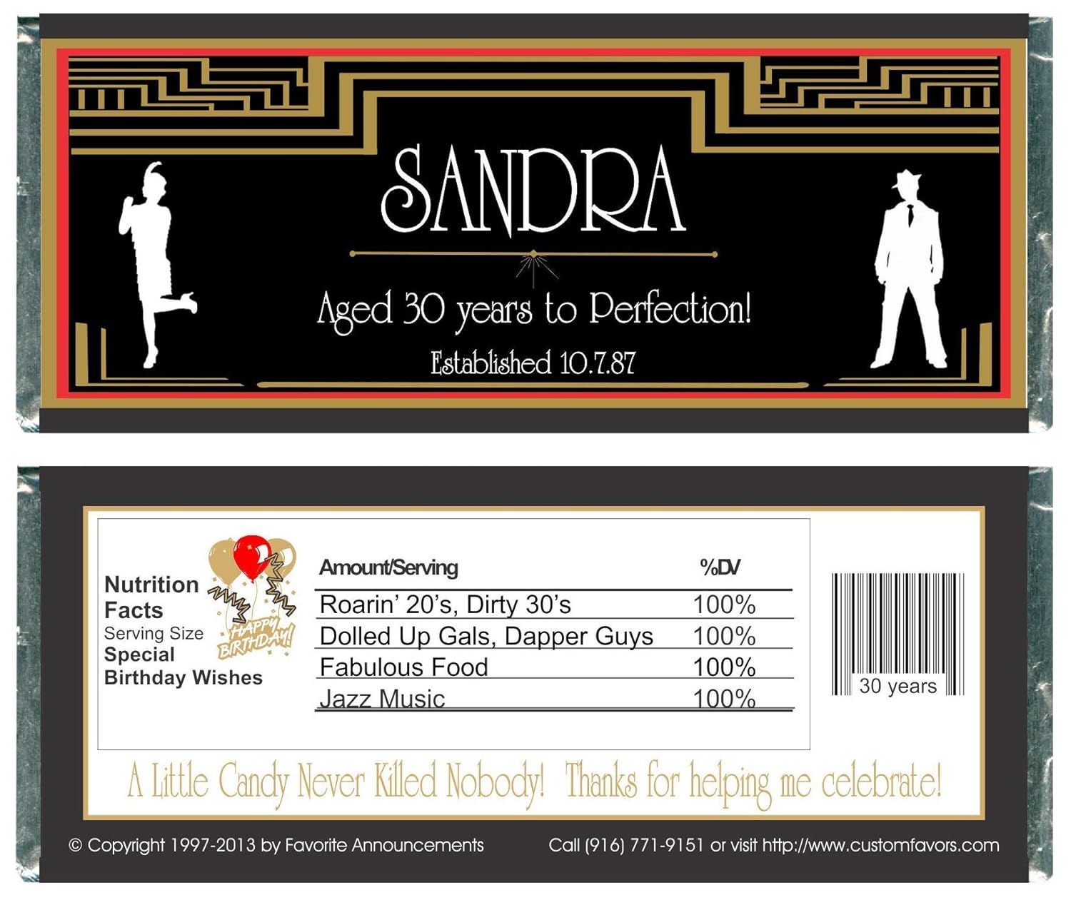 Amazon Com Art Deco Birthday Party Favors Roaring s Candy Bar Wrappers Fits A Chocolate Bar Personalized Set Of 12 W742 Handmade
