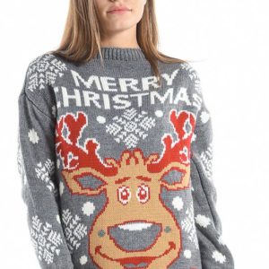 Pull Moche Homme Femme Renne Rouge