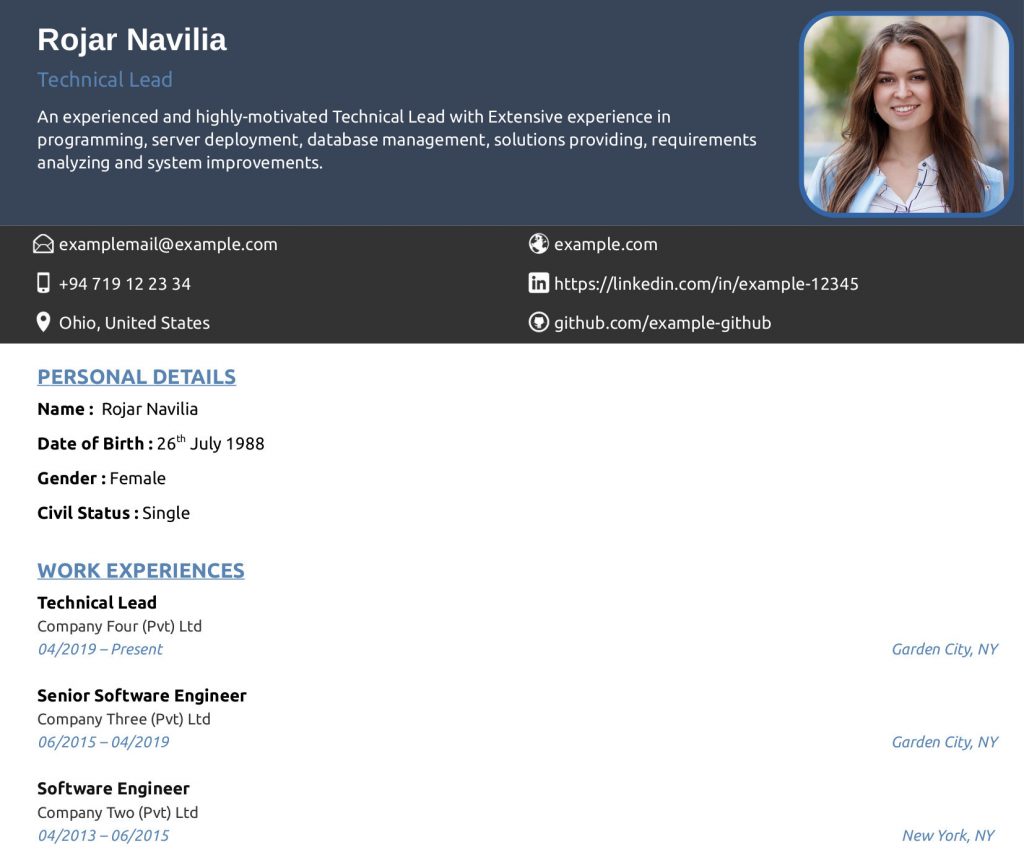 Actually this LibreOffice Writer CV template also a single page template I hope that it will cover all the details sections If you want to change the template just download and edit as you wish Nowadays most of the people search for single page CV templates.