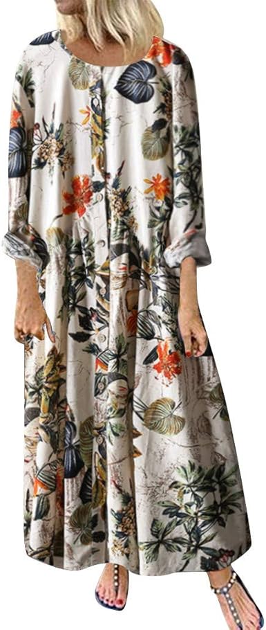 Yimoll Robes De Casual Grande Taille Femme Robe Longue Automne Chemise Robe A Fleurs A Manches Longues Coton Lin Point Chic Robe Sans Manche Ete Plage Chic Casual M 5xl Amazon Fr Vetements Et Accessoires