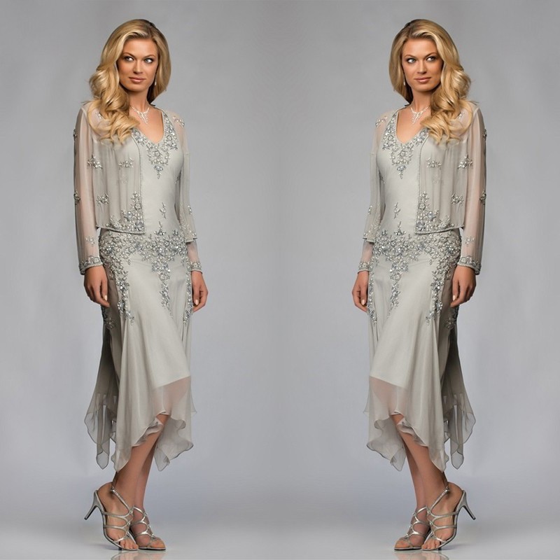 Robe Grise Avec Manche Appliquee De Dentelle Sequin Pour Cocktail De Mariage Robespourmariage Fr