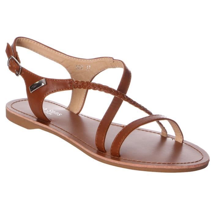 Sandales Plates Camel En Simili Cuir 36 Marron Achat Vente Sandale Nu Pieds Soldes Sur Cdiscount Des Le Janvier Cdiscount