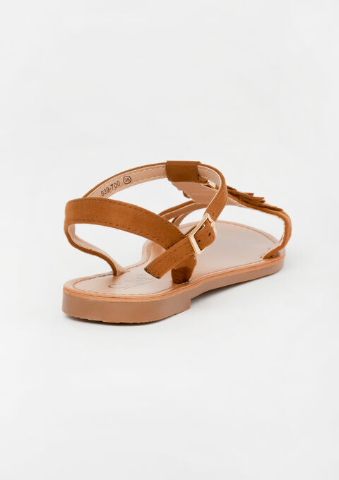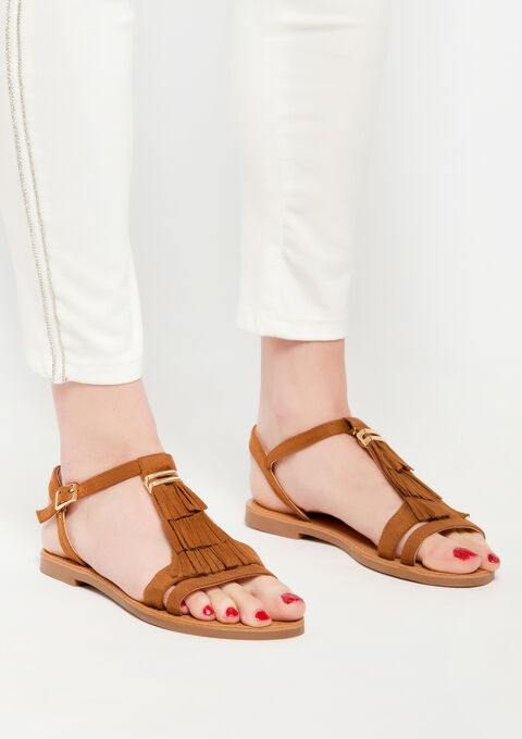 Sandales Plates A Frange Camel Sandrillonchaussures