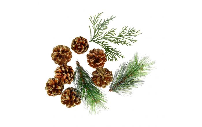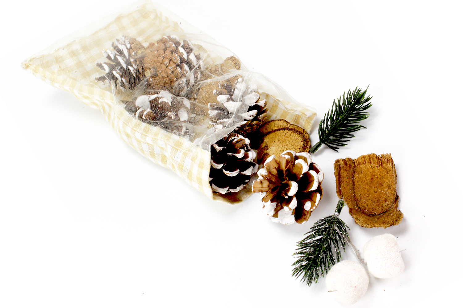 Pochon Deco Nature Pomme De Pin Aiguille Baie Enneigee Pommes De Pin Et Brindilles 10 Doigts