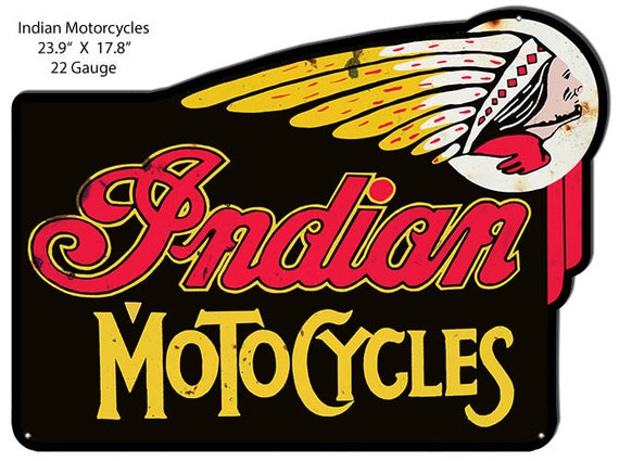 Vintage Motorcycle Signs Indian Moto Cycles Aged 23 9 X Etsy