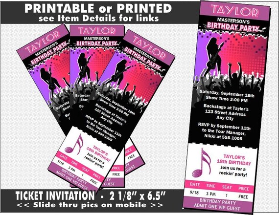 Concert Guitarist Female Ticket Invitation Printable With Etsy