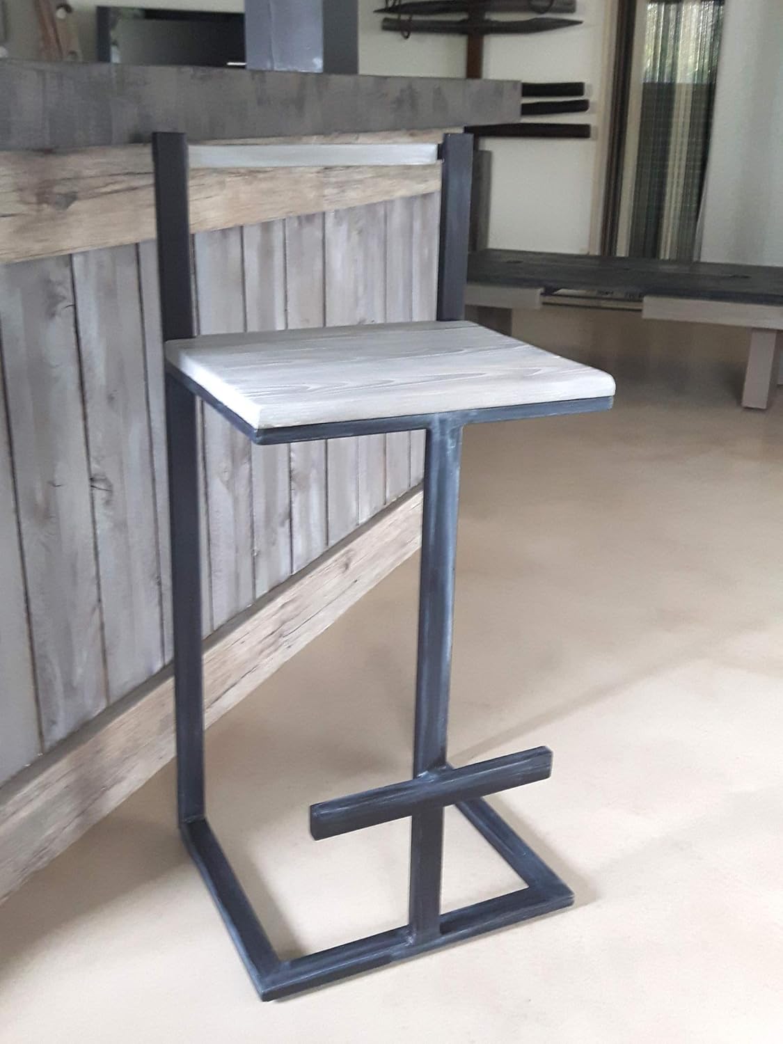 Tabouret Industriel Metal Et Bois Flotte Amazon Fr Handmade