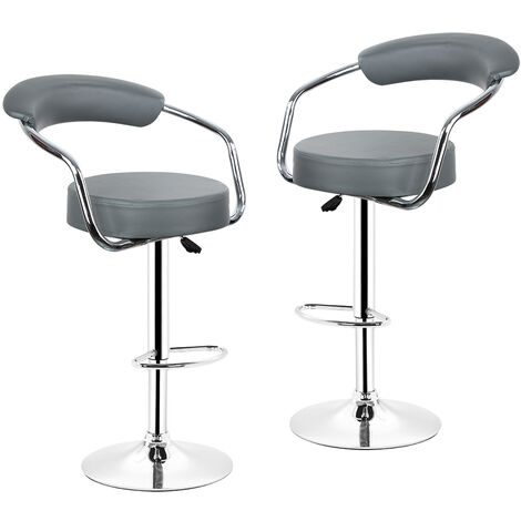 2pcs Tabouret Bar Cuisine Salle A Manger Chaise Fauteuil De Bar Gris Chrome Accoudoirs Sy 03