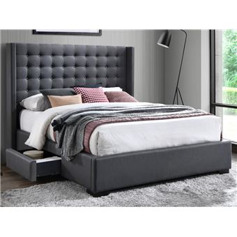 Lit Leonce Tete De Lit Capitonnee Avec Tiroirs 160x0cm Tissu Gris Achat Prix Fnac
