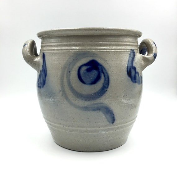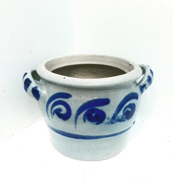 Ancien Pot En Gres Au Sel Alsace Betschdorf Poterie Francaise Anses Gris Bleu Cobalt Artisanat France Pot Graisse Conservation Xixeme Vintage Jars Alsace Jar Vase