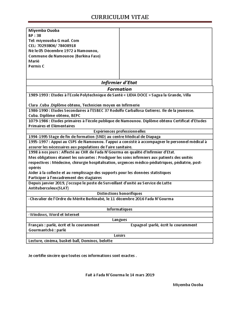 Comment Rediger Un Curriculum Vitae D Infirmiere Diplomee Les Etudiants 21
