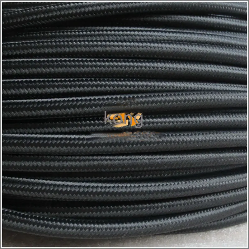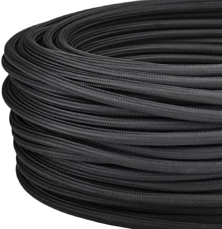 Cable Electrique En Tissu Rond Rond Style Vintage Avec Revetement Colore Lame Noir H03vv F Section 3 X 0 75 Pour Lustres Abat Jour Lampes Fabrique En Italie Design Luminaires Interieur Cuisine Maison