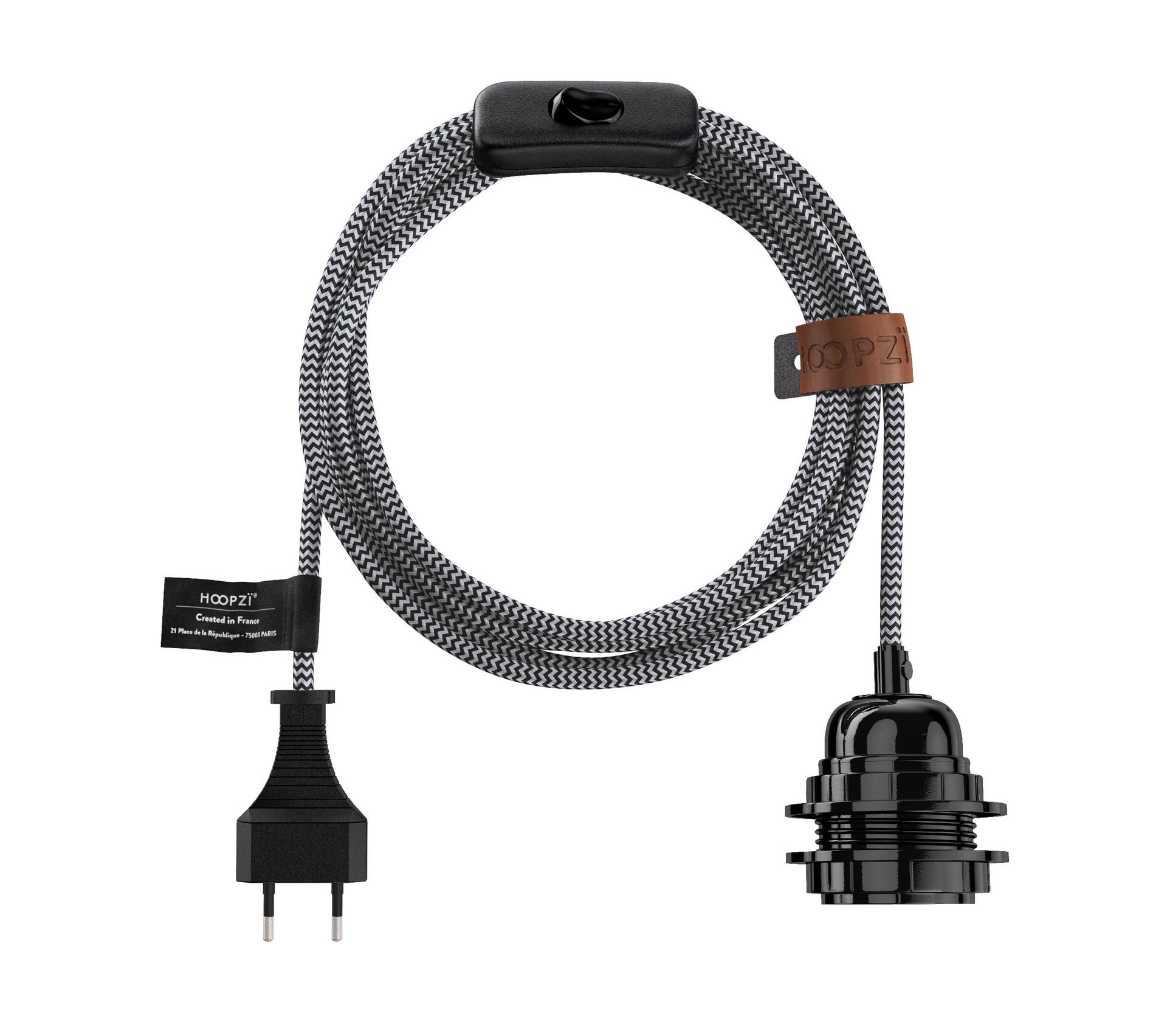 Cordon Textile Gris Zig Zag Avec Interrupteur Et Fiche Noir