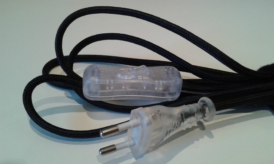 Cordon Electrique Textile Noir Avec Prise Et Interrupteur 2 Metres