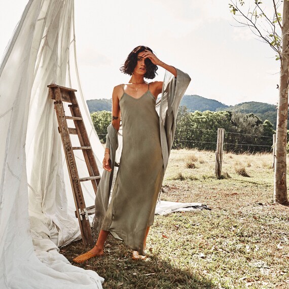Rose Slip Dressolivesummer Slip Dresssilk Petticoatvegan Etsy