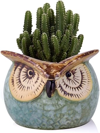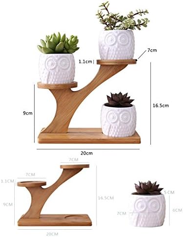 3 Mignon Hibou Pots De Fleurs En Ceramique Avec Support Plante Porte Plantes Pour Cactus Plantes En Pot Et Plantes Succulentes Haodene Pot De Fleur Interieur Etagere A Fleurs En Bois