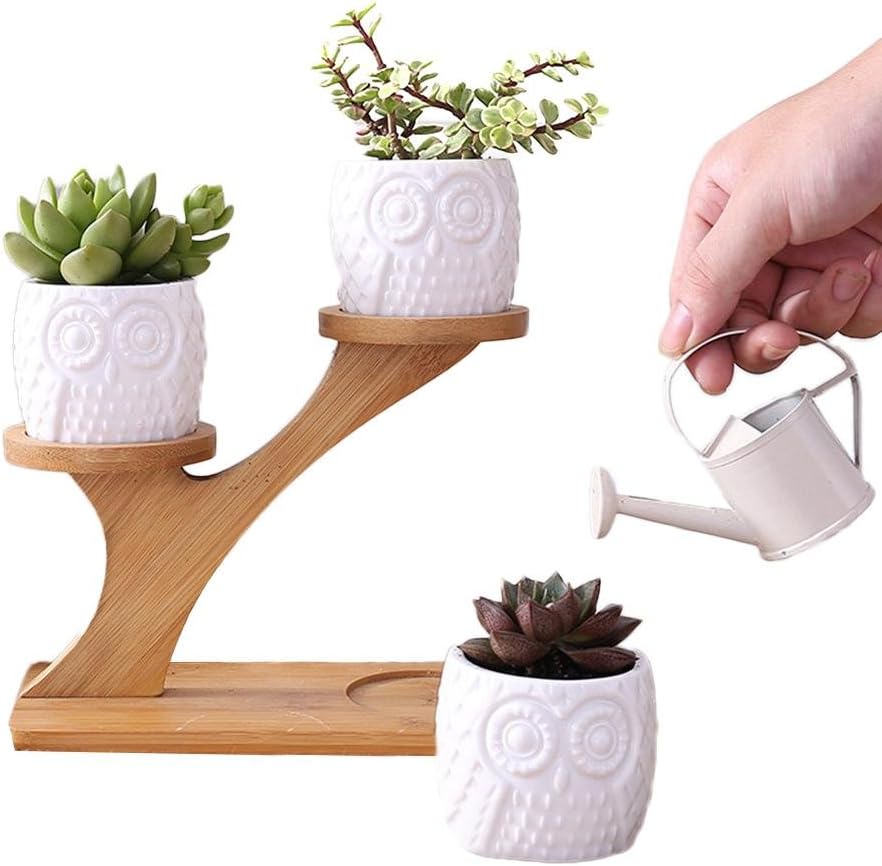 Contenants Et Accessoires Pour Plantes Sans Plantes 3 Mignon Pots Hibou En Ceramique Avec Etagere Porte Plateau Pot En Bois Bambou Original Decoration Maison Jardin Bureau Cadeau Pot De Fleur Pour Plante