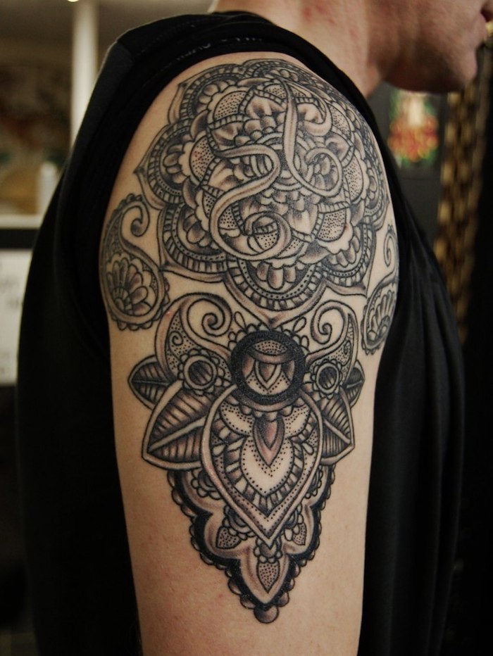 Dotwork Magnifique Epaule Geometrie Graphique Aie Mandala Tattoo Sleeve Sleeve Tattoos Mandala Tattoo Design