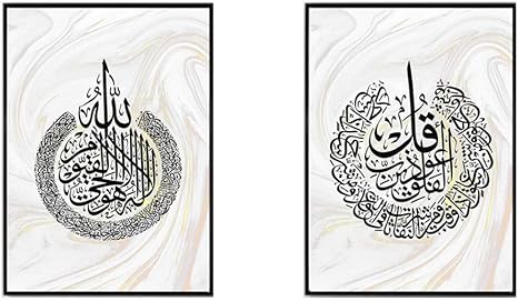 Amazon Com Gold Marble Ayatul Kursi Arabic Calligraphy Islamic Wall Art Canvas Painting Poster Print For Living Room Home Decor Picture 40x60cmx2 No Frame Posters Prints