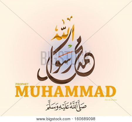 Greeting Cards On The Occasion Of The Birthday Of The Prophet Muhammad Vector Arabic Calligraphy Translation Name Of Prophet Muhammad Peace Be Upon Him With Happy New Year Islamic
