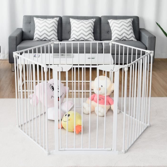 Blanche Barriere De Securite Barriere Grill De Protection Cloture Enfant Pour Porte 380 X 74 5 Cm 6 Pieces Blanche Noire Barrieres D Escaliers Et De Portes Barrieres Et Extensions