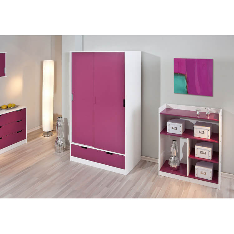 Armoire Enfant Contemporaine 2 Portes Coulissantes Blanche Fuchsia Antea