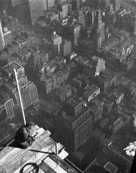 Free shipping for many products!. Lunch atop a Skyscraper (New York Construction Workers Lunching on a Crossbeam) is an iconic photograph taken atop the steelwork of 30 Rockefeller Plaza, during the construction of the Rockefeller Center, in Manhattan, New York City, United States. Lewis W Hine's famous photographs document the construction of the empire State Building, the world's tallest building at the time In the brilliant blackandwhite photographs collected in this volume, Hine pays tribute to the human spirit by dramatically contrasting the workers with the mammoth scale of the structure.