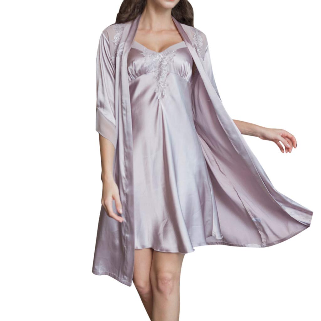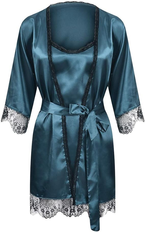 Robes De Cardigan Ensemble 2 Piece Zeeliy Femme Chic Peignoir Soie Artificielle Dentelle Robes Nuisette Chemise Vetements De Pyjama Kimono Chemise De Nuit En Dentelle Peignoirs De Bain Femme
