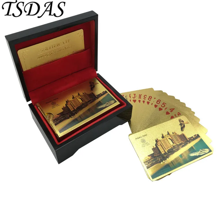 De Luxe De Couleur 24 Carats Or Cartes A Jouer Atlantis Dubai Expo Or Plaque Poker Cartes Avec Une Belle Boite En Bois Aliexpress