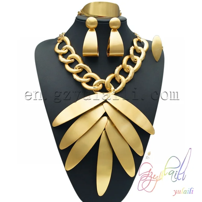 Yulaili Livraison Gratuite 24 Carats Dubai Pur Or Couleur Feuille Bijoux Ensembles Plus Recent Mode Bijoux Fantaisie Grand Pendentif Aliexpress