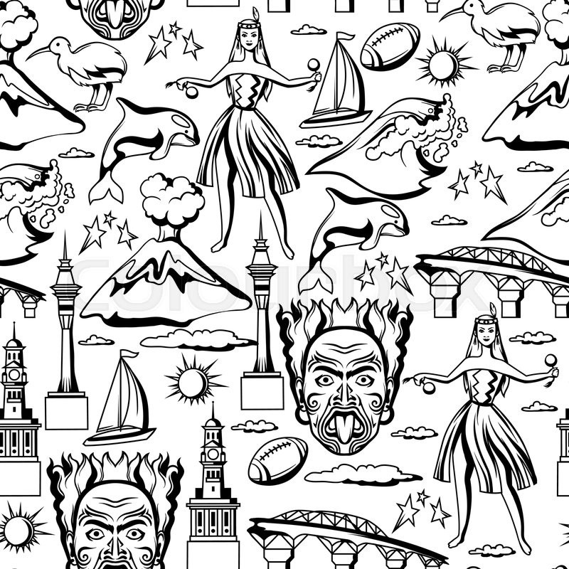 New Zealand Seamless Pattern Oceanian Stock Vector Colourbox