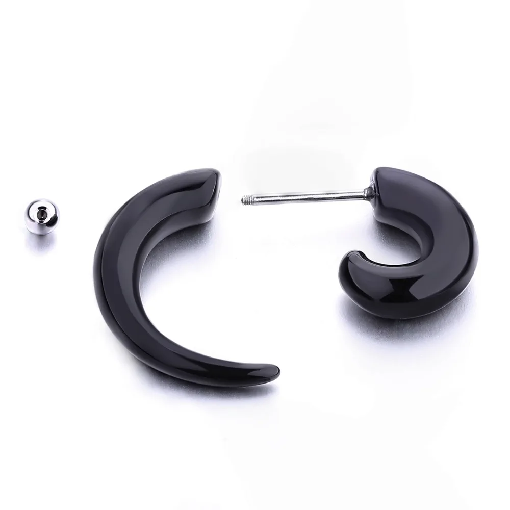 Paire Boucle D Oreille Homme Acier Noir Plug Pointe Cone Sexy Gothique