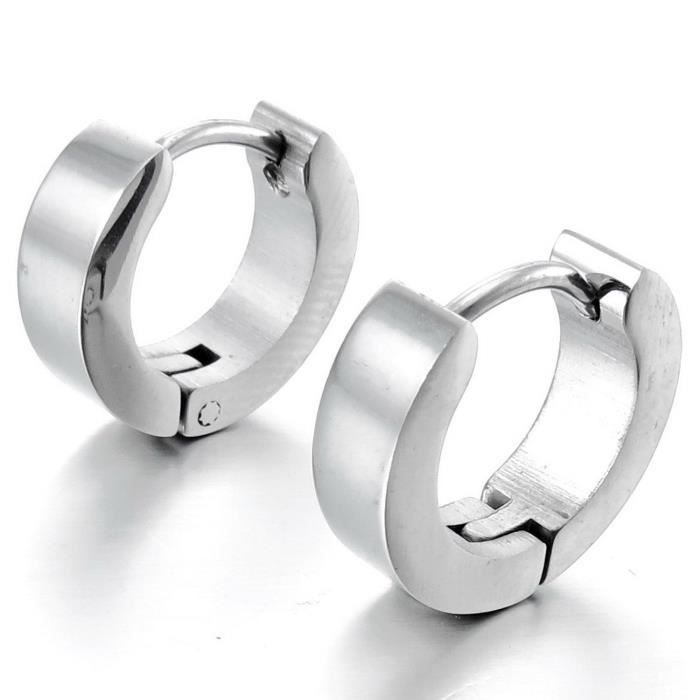 Paire Boucles D Oreille Homme Anneaux Acier Argente Anneau Oreille Bijoux Oreille Boucle D Oreille Homme