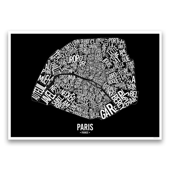 Affiche Quartiers De Paris Plan Des Arrondissements Carte De Etsy