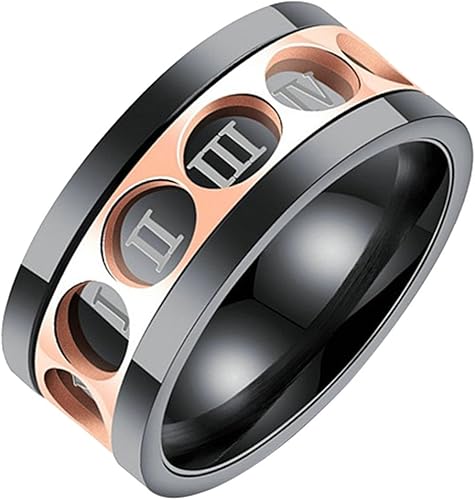 Onefeart Acier Inoxydable Bague Pour Les Hommes Garcon Rotated Chiffres Romains Bague Noir Taille 65 Cadeau D Anniversaire Amazon Fr Bijoux