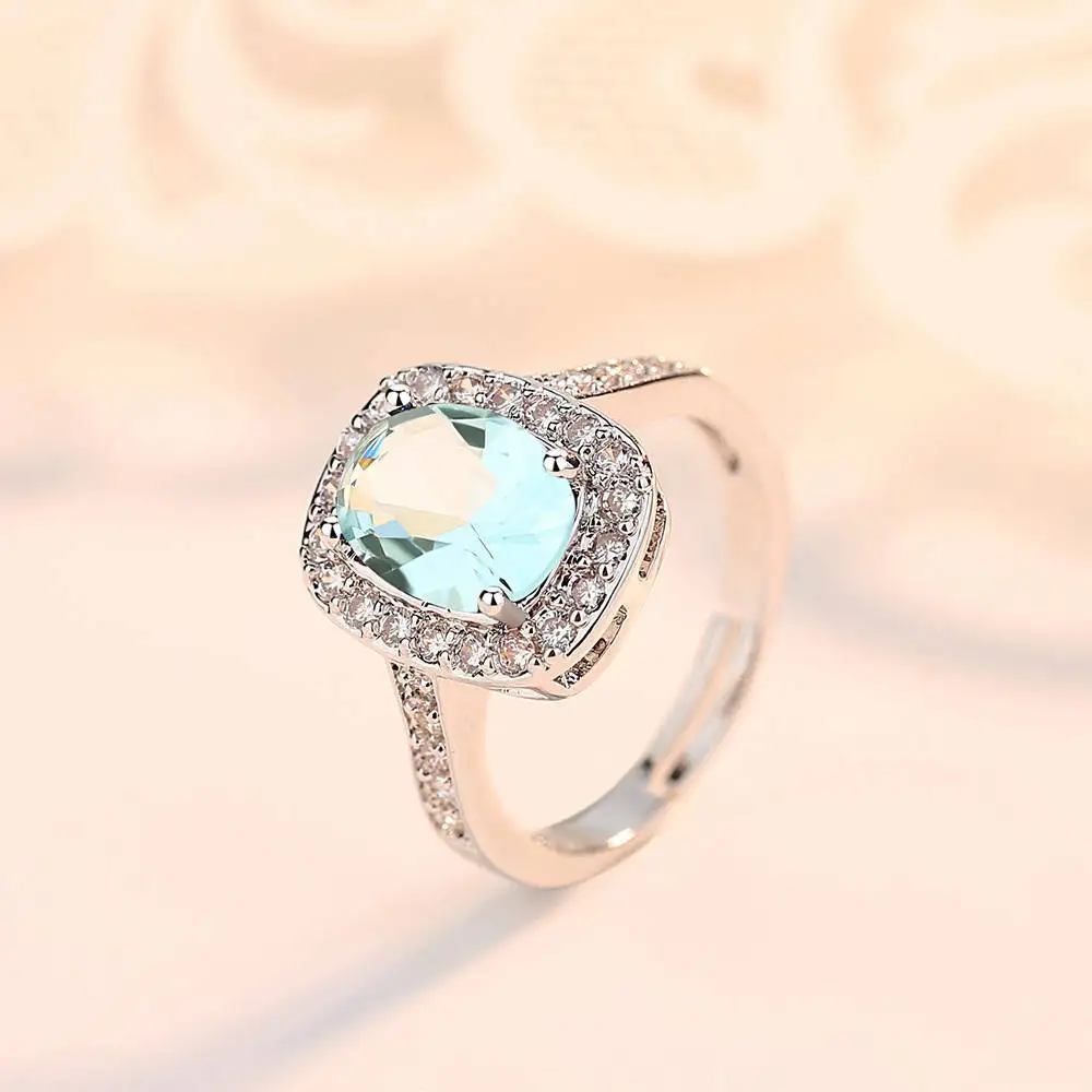 Bague Marquise Carre Alternes Cz Bleu Saphir Cristal Plaque Or Femme Bague Maty