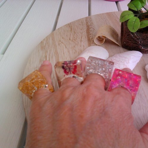 Bague Carre Resine Transparente Parseme D Or Roland Framorando Createur D Objets En Resines