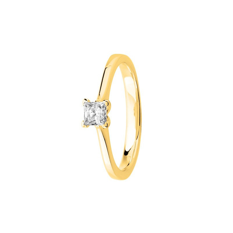 Bague Solitaire Diamant Serti 4 Griffes Diamant Carre En Or Jaune