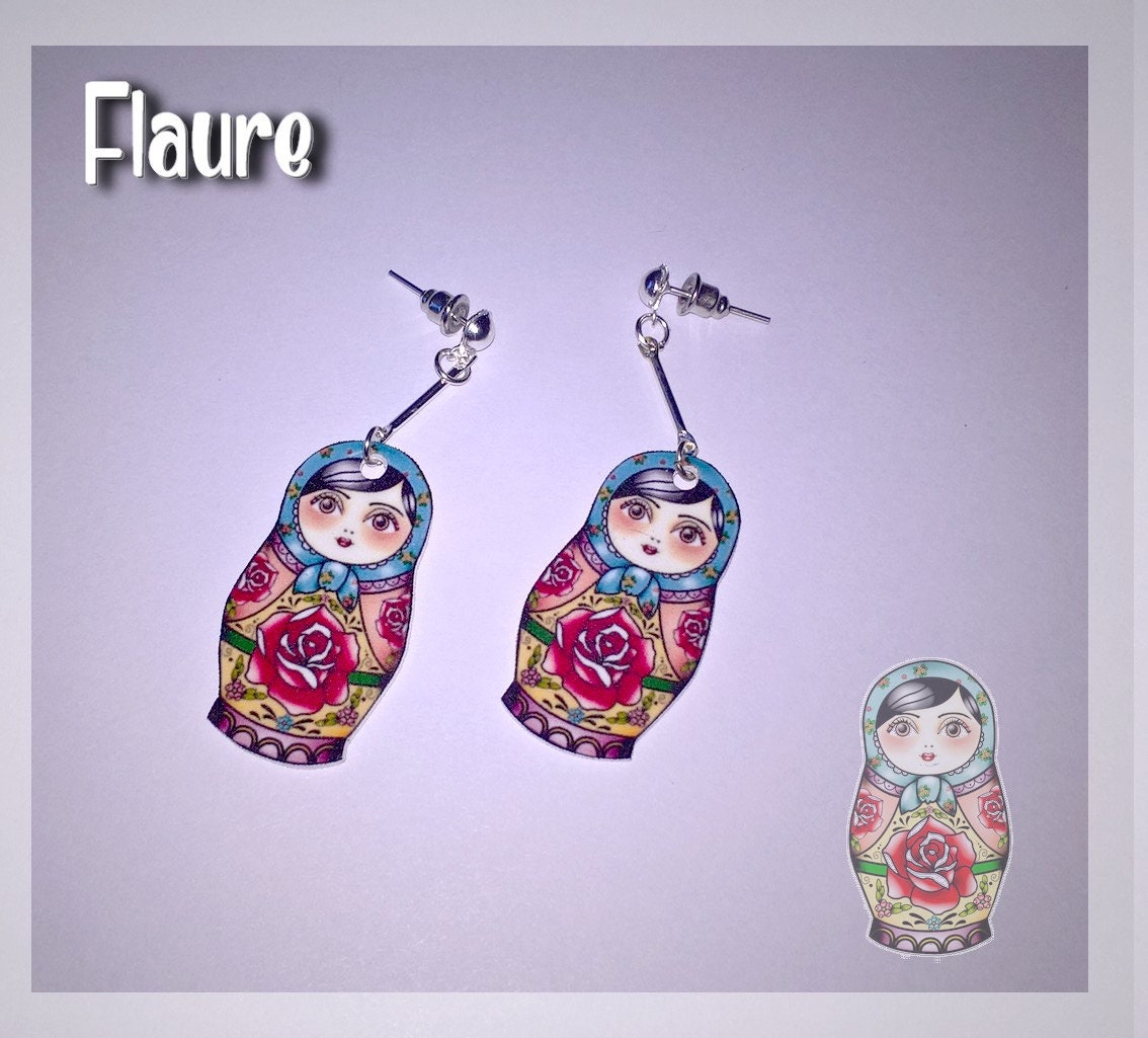 Earrings Rose Matryoshka Bijoux Matriochka Poupees Russes Idee Cadeau