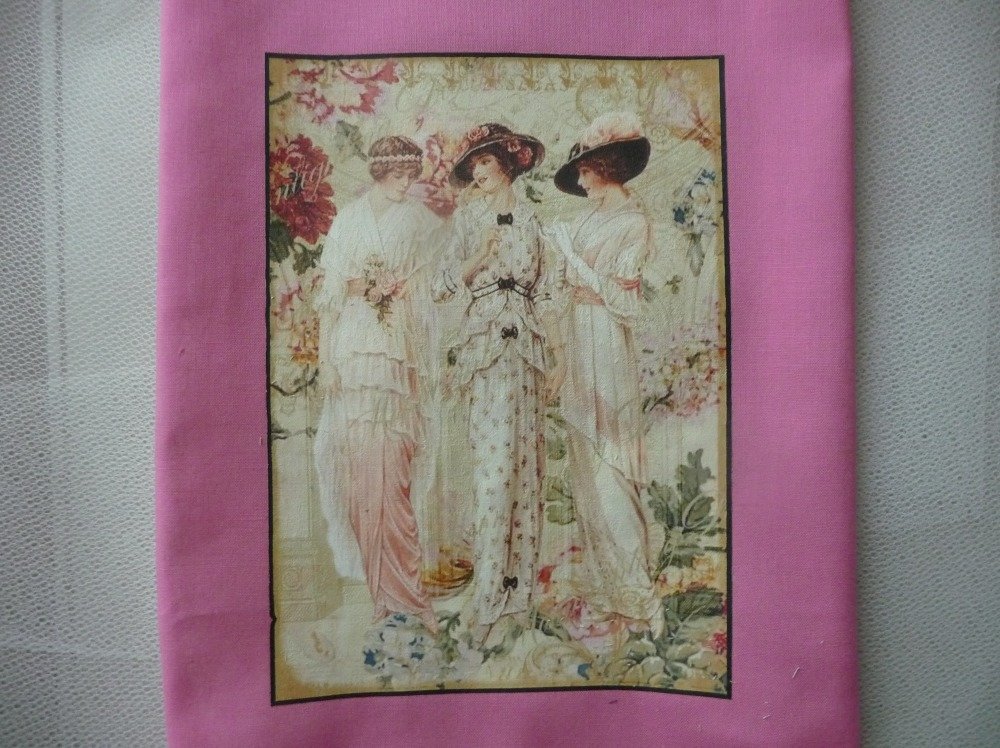 Transfert Image Retro Illustration Shabby 3 Gracieuses Jeunes Femmes Elegantes Et Romantiques Annees Folles Transferee Sur Tissu Coton Rose Un Grand Marche