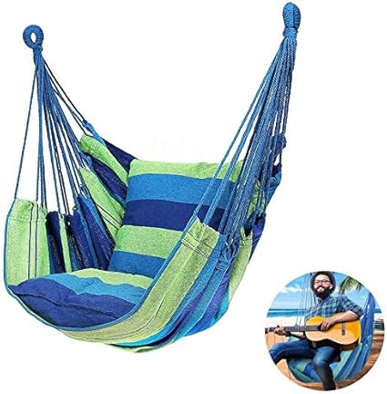 Fauteuil Suspendu Jardin En Toile De Coton Balancoire Suspendue Pour Chaise Hamac Chaise De Hamac Balancoire Pour Chaise Suspendue Hamac Avec Oreiller Pour Interieur Et Exterieur Max 330 Lbs Amazon Fr Sports