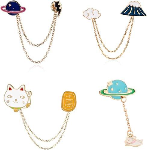 Ppx 4 Pieces Collier Pins Broche Clip Pin Set Modele Montagne Motif De Chat Modele De Foudre Planete Modele De Lapin Blanc Planete Brooches Col De Chemise Pieces De Decoration Amazon Fr Bijoux